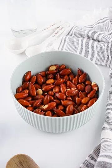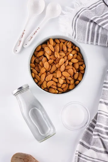 - Place your almonds in a bowl and cover them generously with fresh, filtered water.