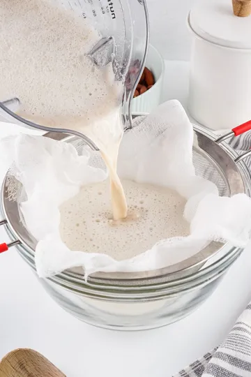 - Set Up Your Strainer: Place a nut milk bag or a double layer of cheesecloth over your fine-mesh strainer, positioned securely above a bowl.