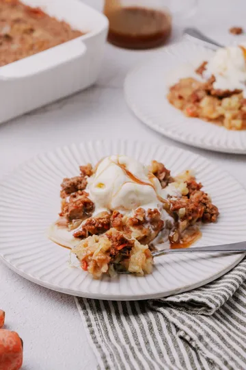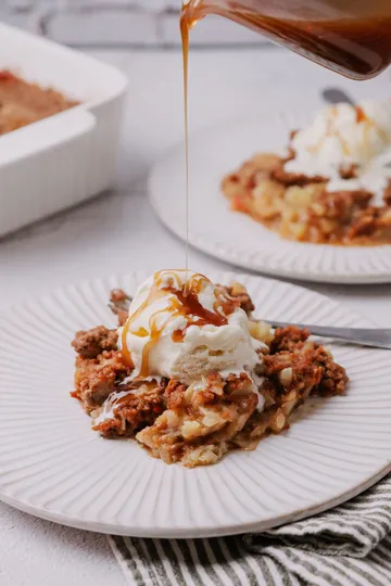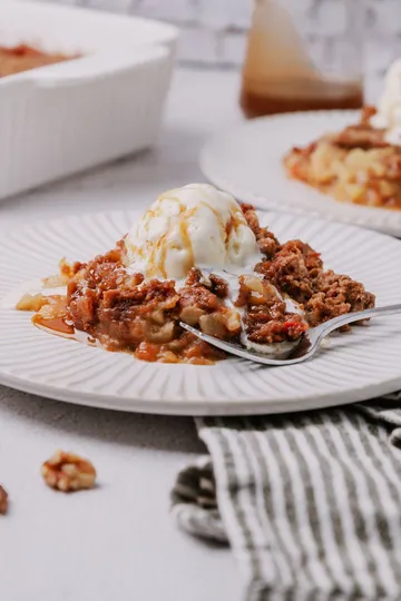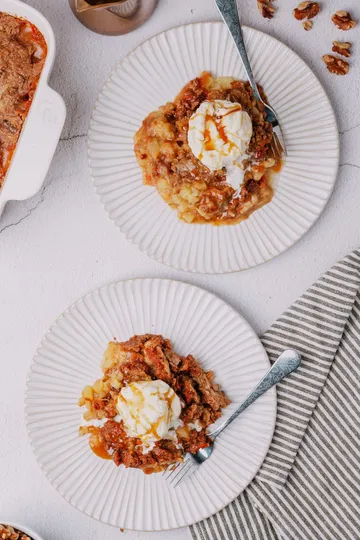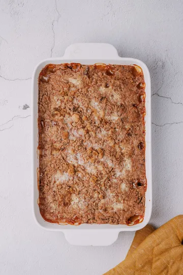 Crunchy & Buttery Topping: A golden crumble with walnuts for extra texture.