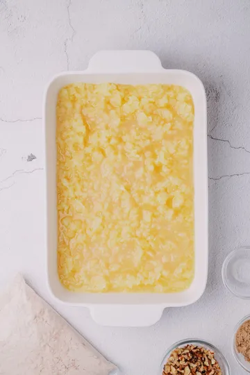 - Pour the melted butter evenly over the top.