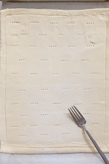- Prick holes all over the inside of the border with a fork to prevent the center from puffing up too much.